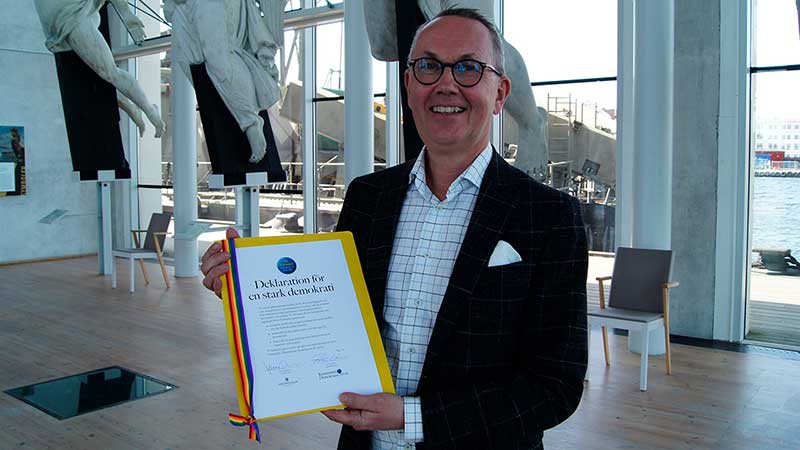 – Att underteckna demokratideklarationen är ett självklart val för Marinmuseum. Trots att demokratin i Sverige fyller hundra år kan den inte tas för given, utan måste värnas och utvecklas kontinuerligt. Vi kommer därför på ett mer genomgripande sätt satsa på demokrati, samhällsengagemang och tillgänglighet, säger Mats.