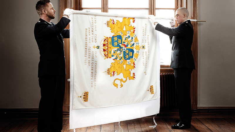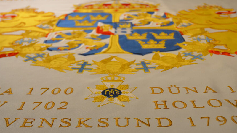 Fanor och flaggor tillverkas i siden och det ligger många timmars arbete bakom dem. De broderas eller sys, ofta för hand, av Handarbetets Vänner eller Flaggfabriken i Åkersberga.